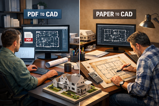 PDF to CAD and Paper to CAD conversion each serve distinct purposes. The right choice depends on your documentation format, project scope, timeline, and compliance needs.